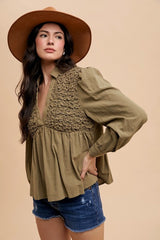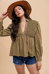 Honeycomb Smocking babydoll Top Olive