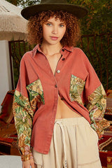 Jacquard Floral Sleeve Shacket Sunset Clay
