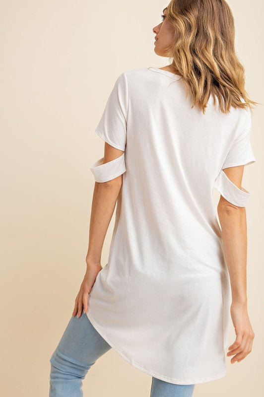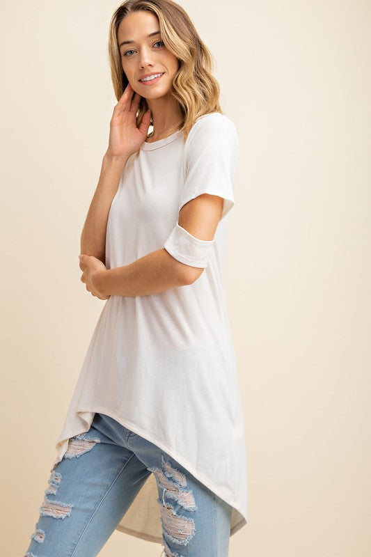 Jersey Cut Out Sleeve Hi-Low Top Dove
