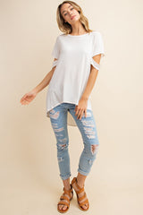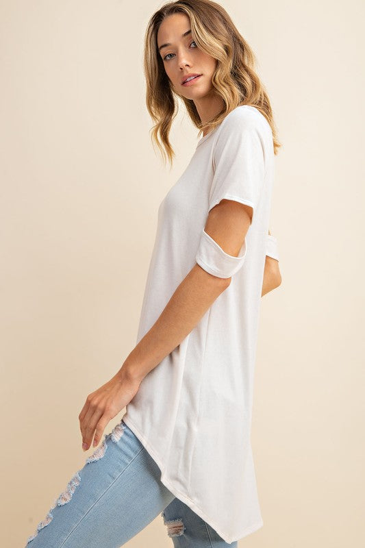 Jersey Cut Out Sleeve Hi-Low Top