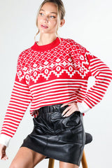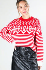 Long Sleeve Pattern Detail Sweater Red