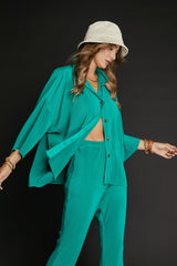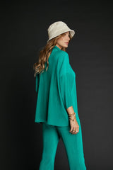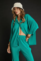 Loose Fit Button Down Wrinkle Shirt Jade