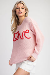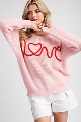 Love Long Sleeve Sweater Top Pink