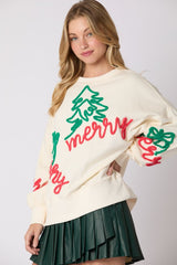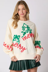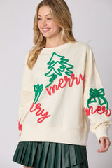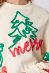 'Merry' Thread Embroidery Sweatshirt Top Cream