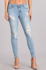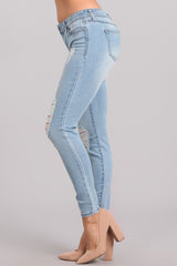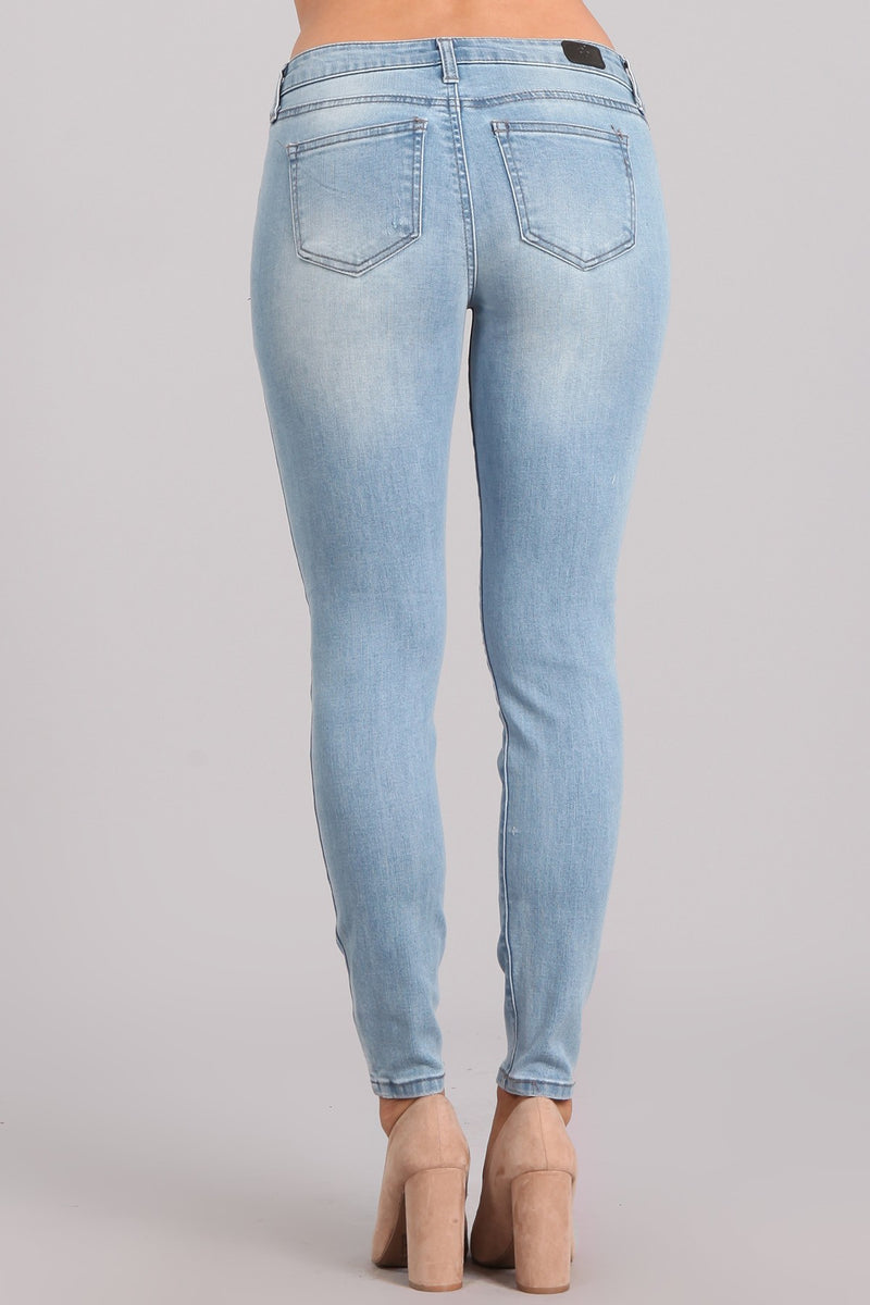 Mid-Rise Ankle Skinny Jeans Ripped Details Denim