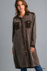 Mineral Wash Corduroy Shacket Chocolate