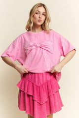 Mineral Wash Ribbon Bow Top Bubble Gum