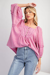 Mineral Washed Babydoll Tunic Top Cotton Candy