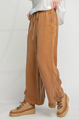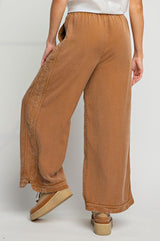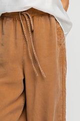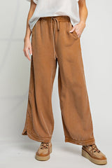 Mineral Washed Soft Twill Wide Leg Pants Camel