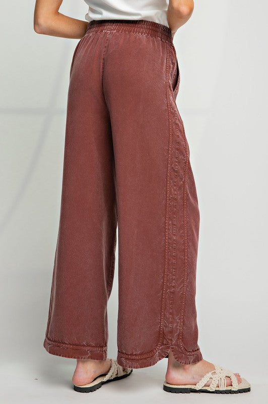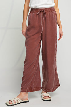 Mineral Washed Soft Twill Wide Leg Pants Espresso