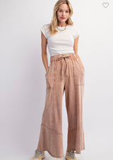 Mineral Washed Terry Knit Wide Leg Pants Cappuccino