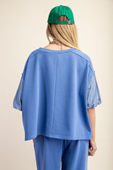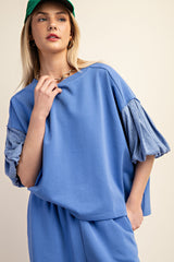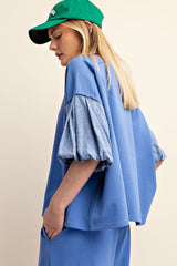 Mixed Jersey Short Puff Sleeved Tee Blue