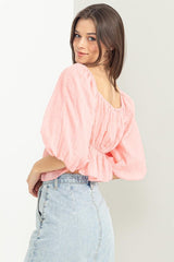 Off Shoulder Peplum Top Pink
