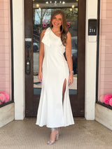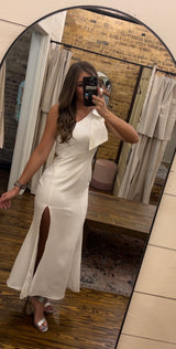 One Shoulder Bow Side Slit Maxi Dress Off White