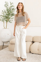 Open-Knit Short Sleeve Top Silver Gray