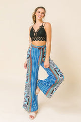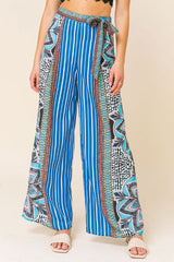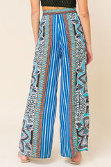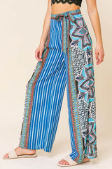 Palazzo Mosaic Print Front Pleating Pants Blue