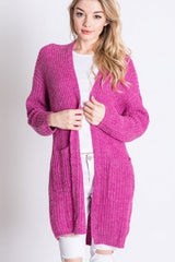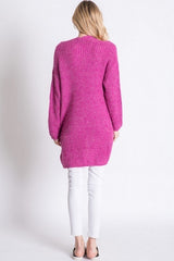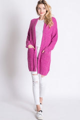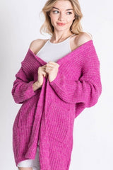 Pattern Knit Dolman Slouch Cardigan Fuschia