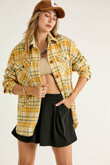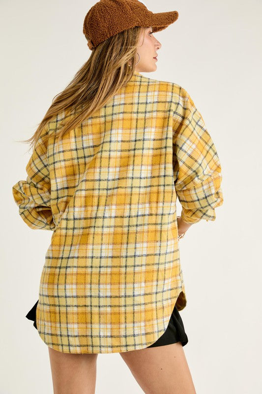 Plaid Button Up Shacket Mustard