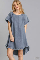 Pocket Denim Dress with Fringe Denim