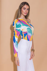 Printed Knit Puff Shoulder Bodysuit Mint/Royal