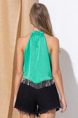 Rhinestone Fringe Crop Tank Green