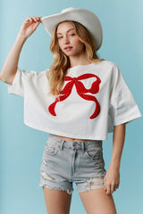 Rhinestone Studded Bow Embroidery Top White