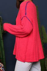 Ribbed Knit Contrast Seam Sweater Fuchsia