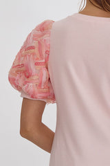 Ribbed Knit Short Sleeve Top Light Pink