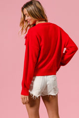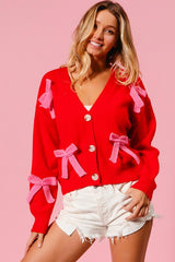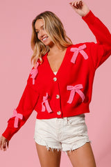 Ribbon Bow Sweater Cardigan Red/Pink