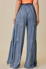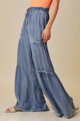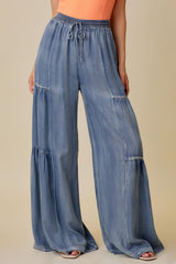 Ruffled Side Washed Wide Pants Denim