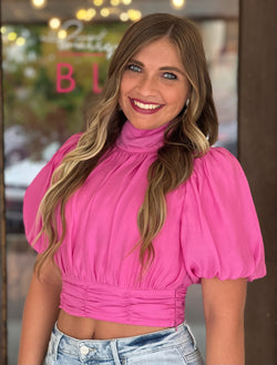 Satin High-Neck Puff Sleeve Top Orchid