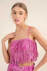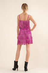 Satin Studded Tiered Fringe Cami Top Hot Pink