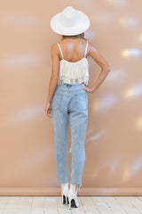 Satin Studded Tiered Fringe Cami Top White