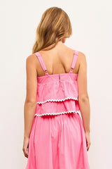 Scallop Trim Tiered Sleeve Top Candy Pink