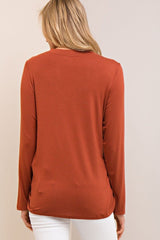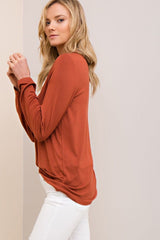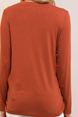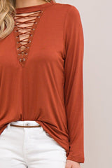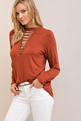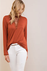 Lightweight Solid Long Sleeve Top featuring Lace Up Details at Neckline