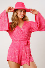 Sequin Belted Romper Pink