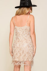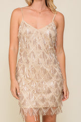 Sequin Fringe Bodycon V-Neck Dress Gold