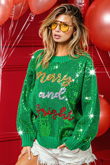 Sequin Merry and Bright Christmas Sweater Green