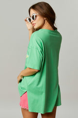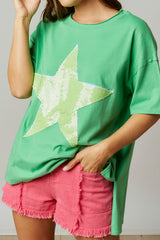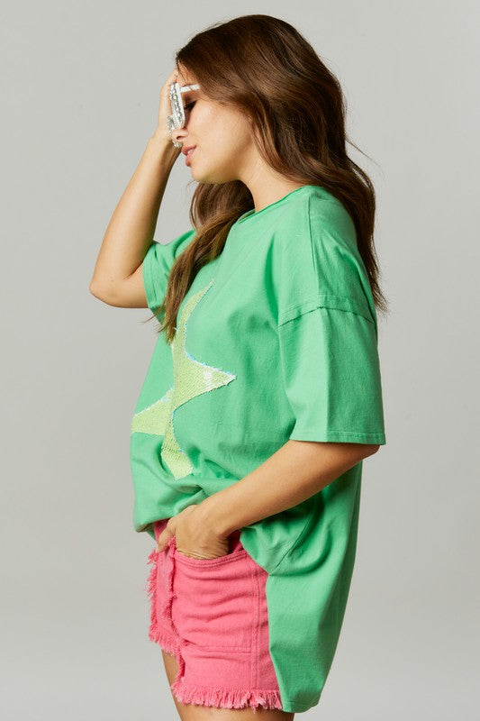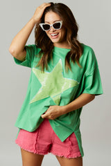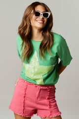 Sequin Star Cotton Loose Fit Top Green