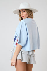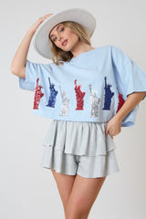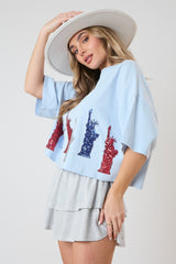 Sequin 'Statue of Liberty' Embroidery Tee Baby Blue