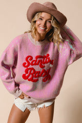 Sequins Chrsitmas Santa Baby Sweater Top Pink