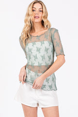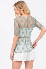 Short Sleeve Floral Lace Top Sage