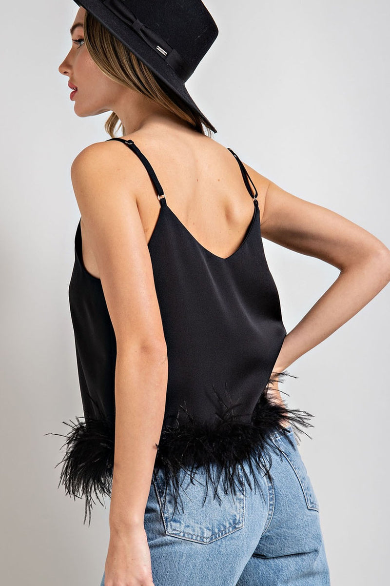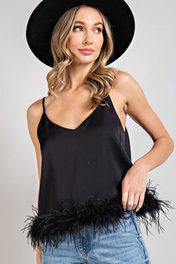 Sleeveless Feather Trim Cami Top Black
