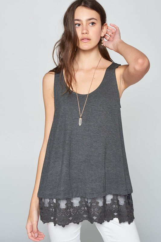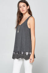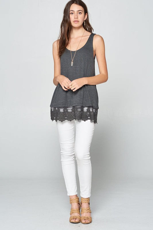 Solid Jersey Sleeveless Lace Extender Tunic Tank Top