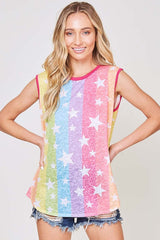 SPRING - Sleeveless Rainbow Star Print Tank Top Multi