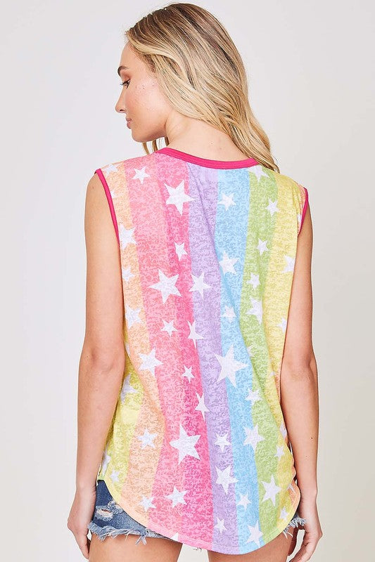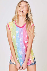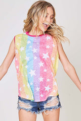 Sleeveless Rainbow Stripe Star Print Tank Top