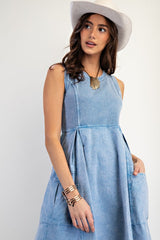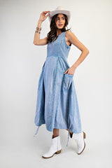 Sleeveless Rib Knit Cargo Mxi Dress Denim