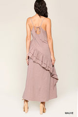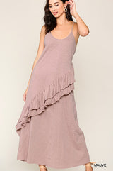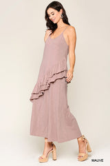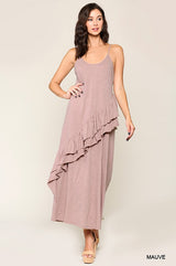 Sleeveless Ruffle Detail Maxi Dress Mauve