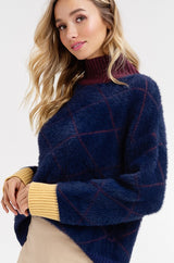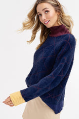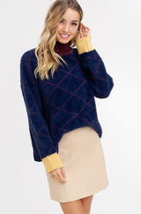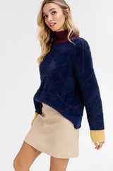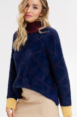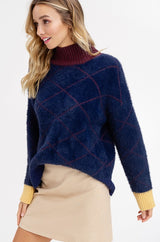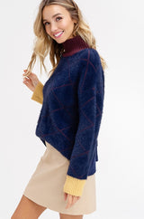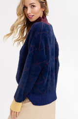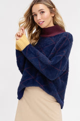 Soft Fur Color Blocked Ribbed Sweater Ink Blue