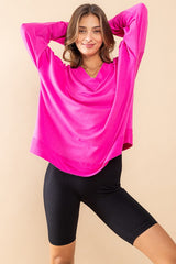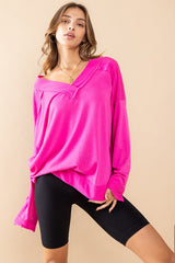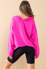 Solid Comfort Fit V-Neck Sweatshirt Hot Pink